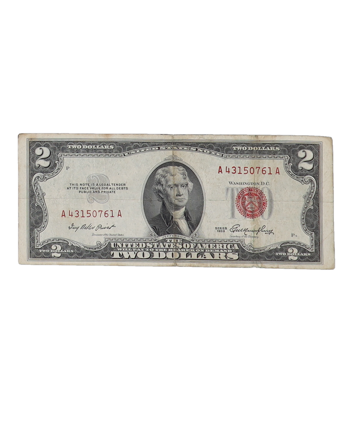 1953 United States $2 Two Dollar Red Seal Legal Tender Banknote