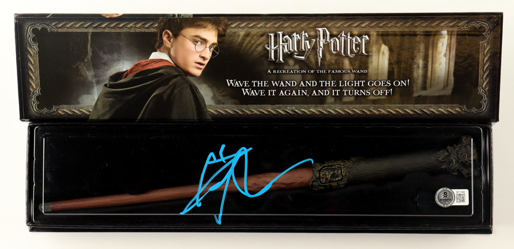 Toy wand has been hand-signed on the original packaging by Daniel Radcliffe. Please note, there is scuffing on the packaging window.