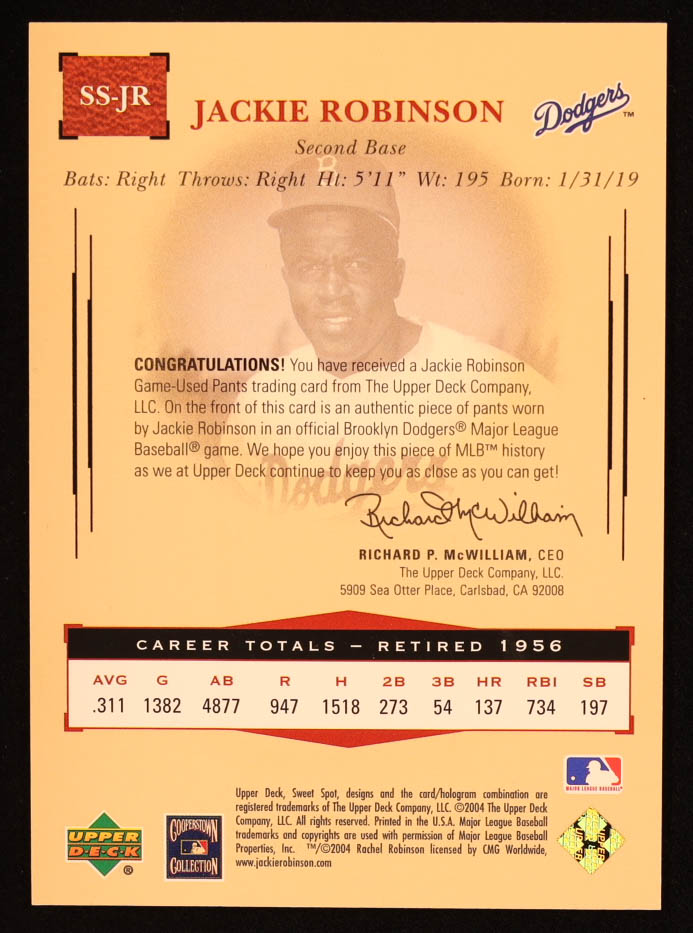 Jackie Robinson 2004 Sweet Spot Classic Game Used Memorabilia #SSJR / Pants #177/275