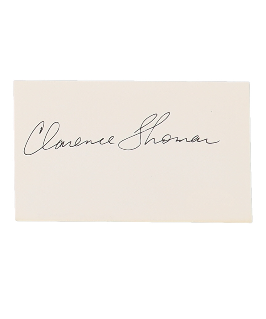 Index card measures 3" x 5" in size. Hand-signed by Clarence Thomas.