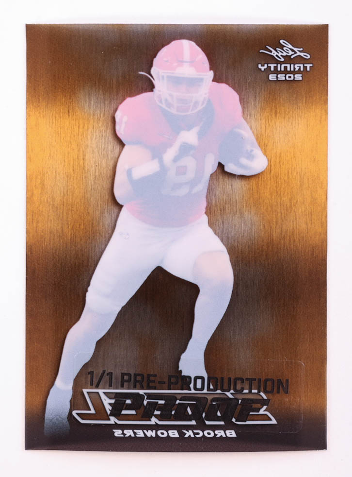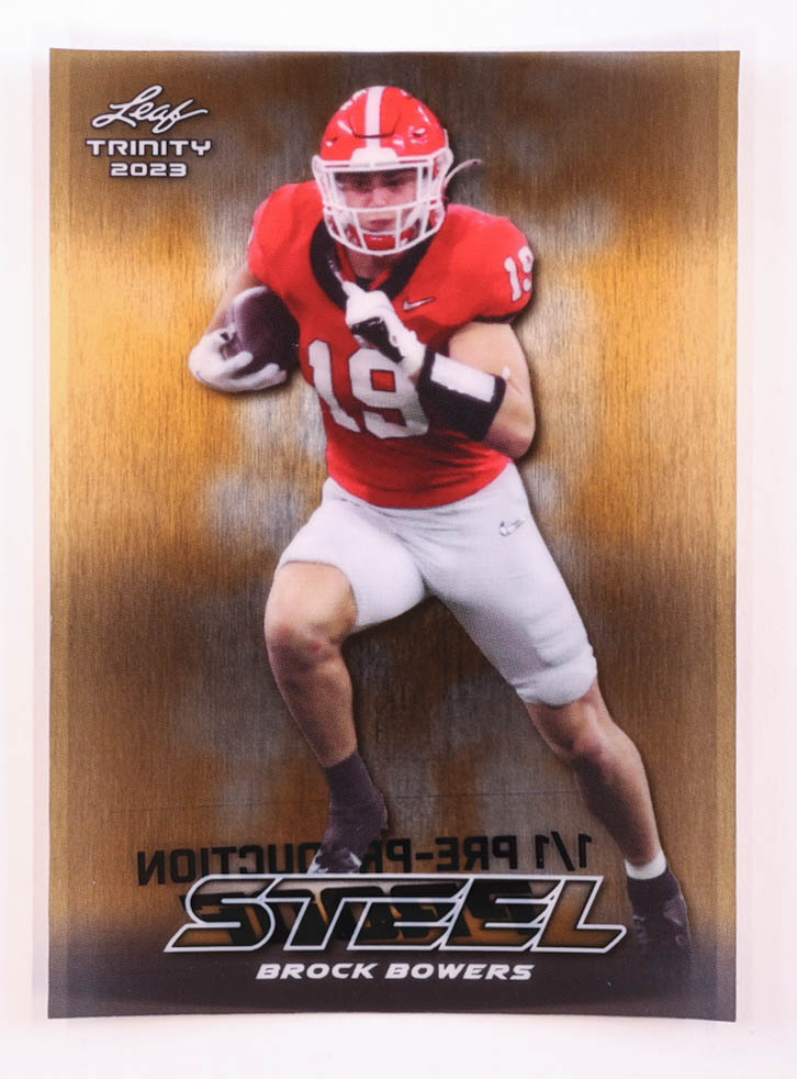 Brock Bowers 2023 Leaf Trinity Steel Pre-Production Proof Clear Orange RC #1/1