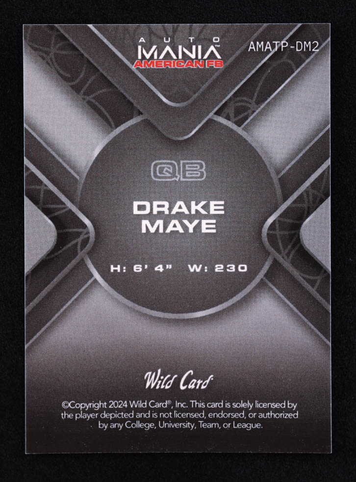 Drake Maye 2024 Wild Card Auto Mania Circle Mount Rushmore Crystal Black #AMATPDM2 RC #2/3