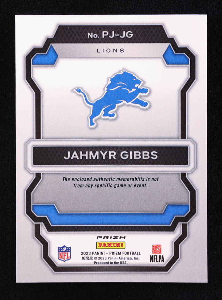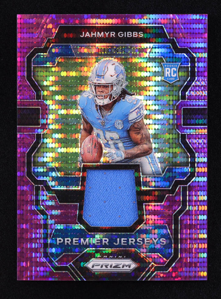 Jahmyr Gibbs 2023 Panini Prizm Premier Jerseys Purple Pulsar #7 RC