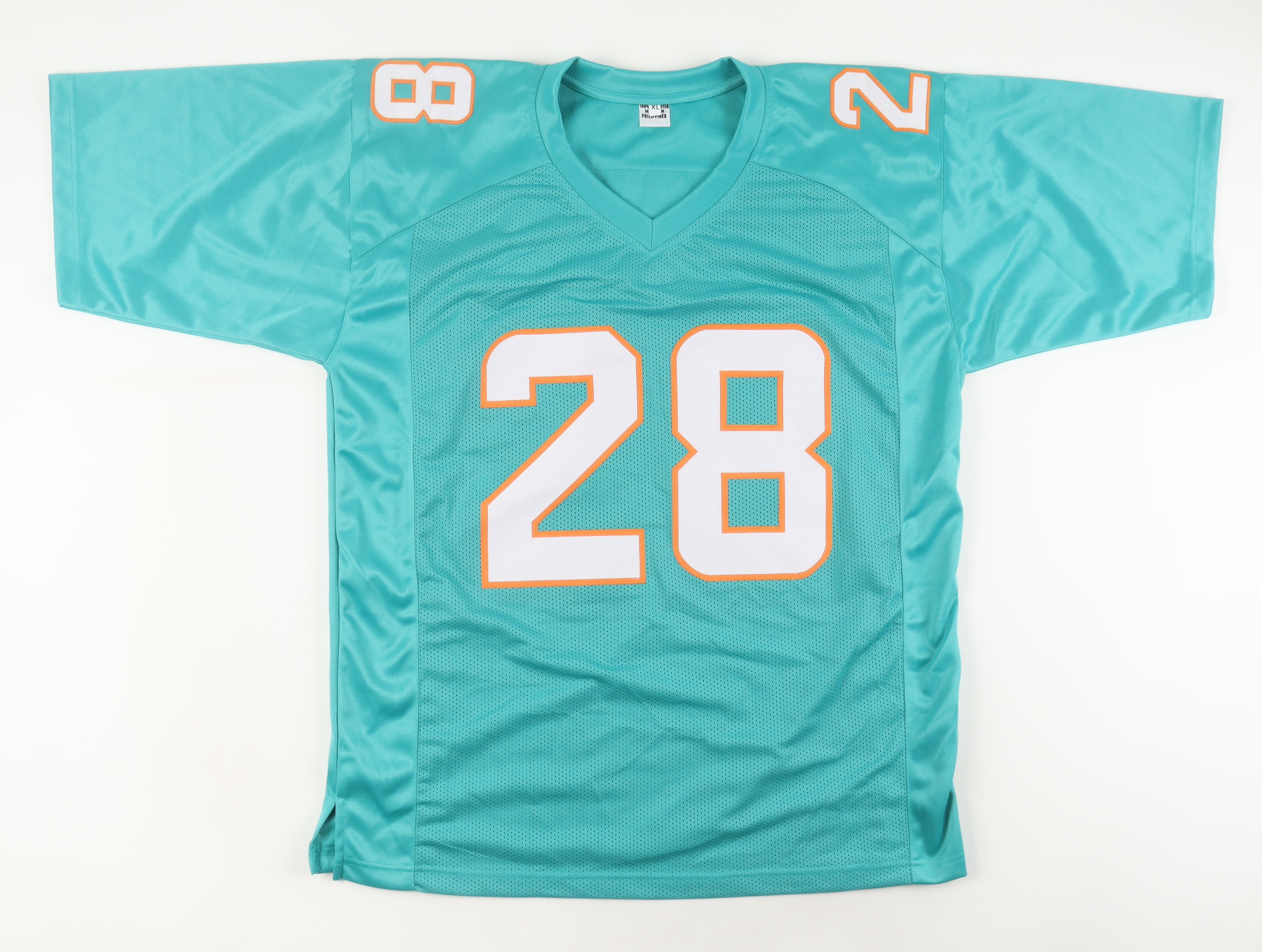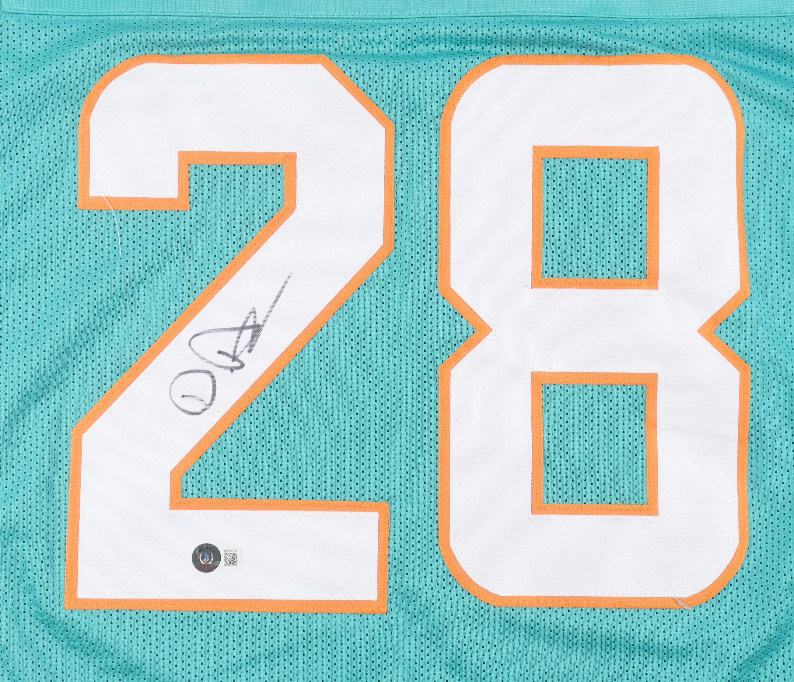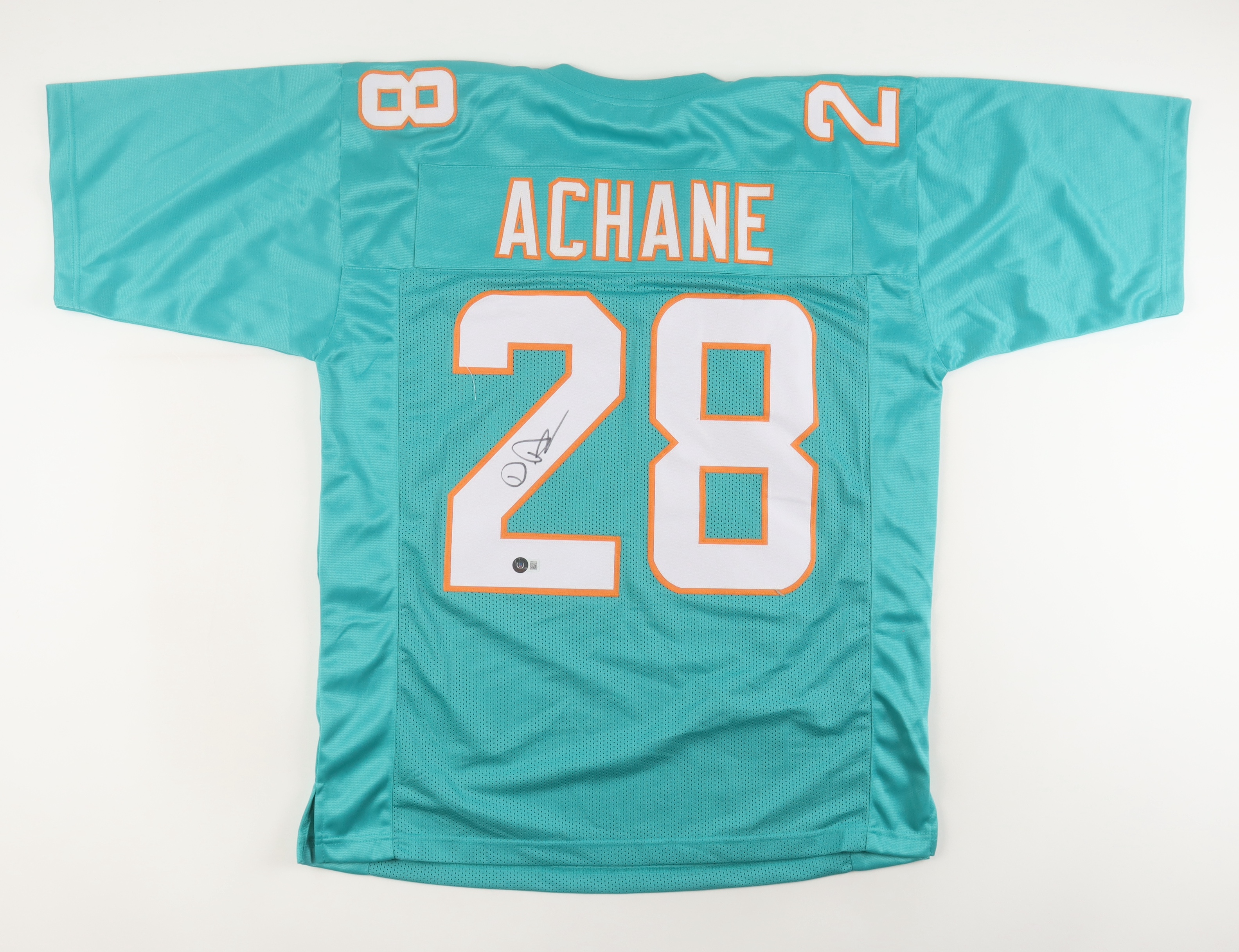 Custom football jersey. Everything sewn on, size XL. Hand-signed by De'Von Achane.
