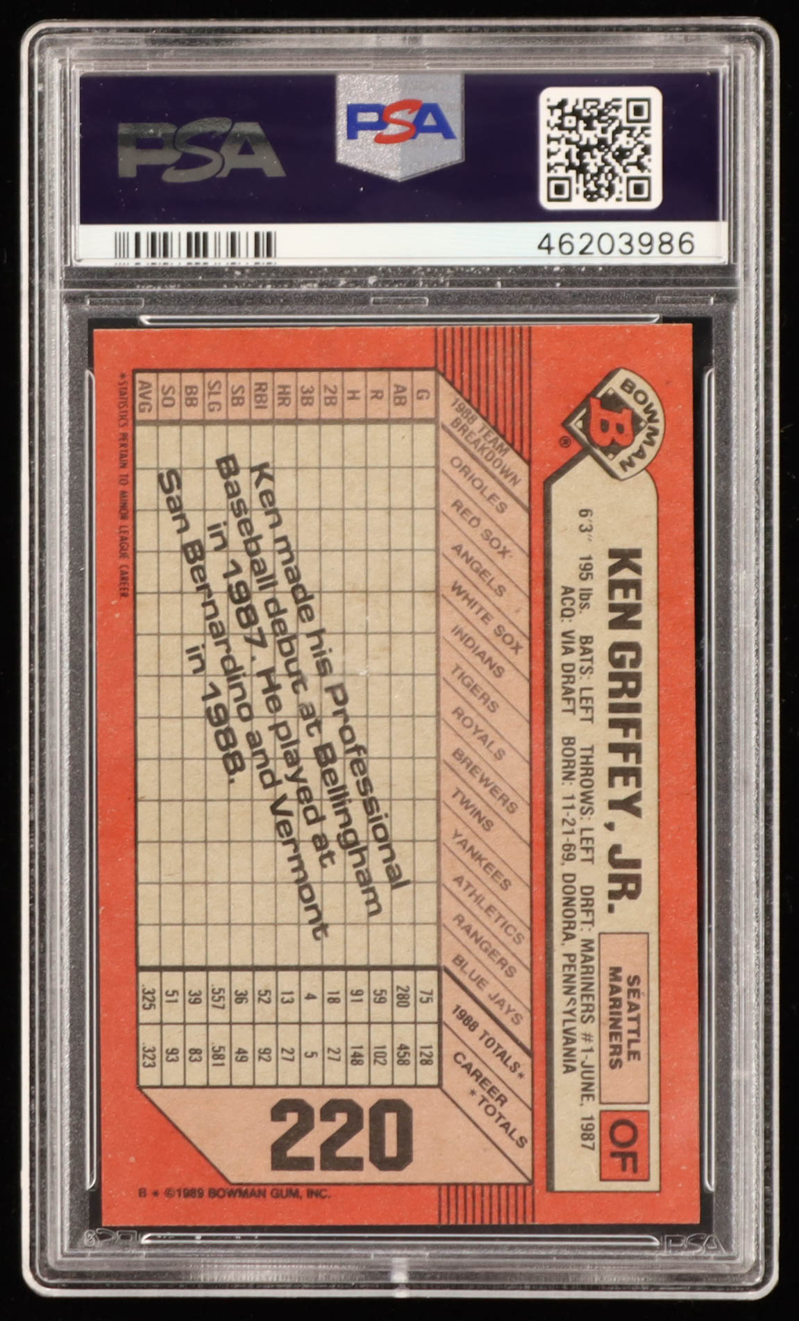 Ken Griffey Jr. 1989 Bowman #220 RC (PSA 9)