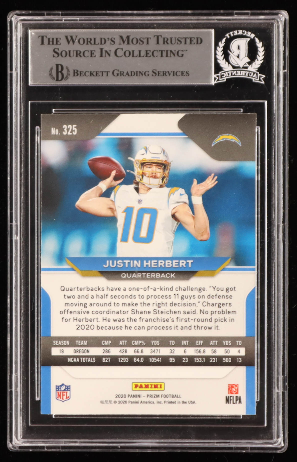 Justin Herbert Signed 2020 Panini Prizm #325A RC (BGS)