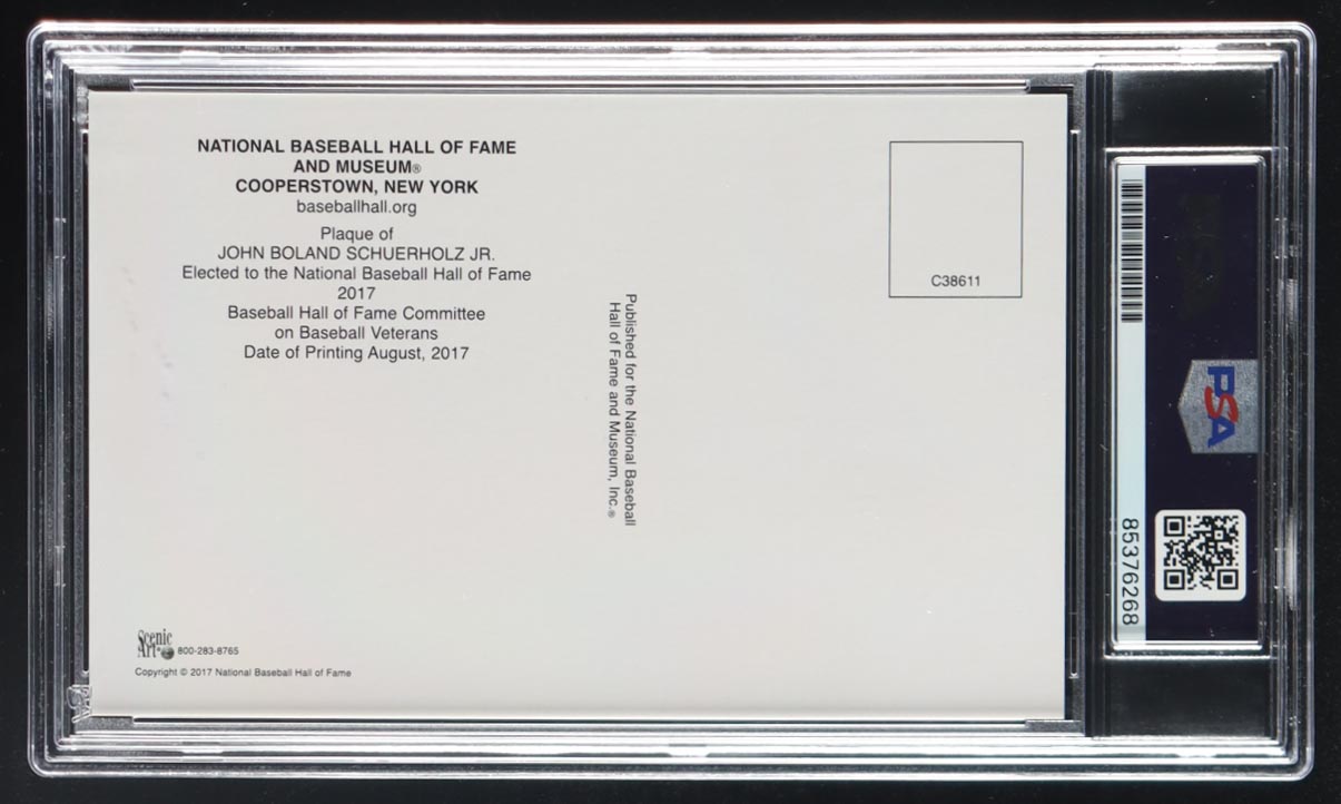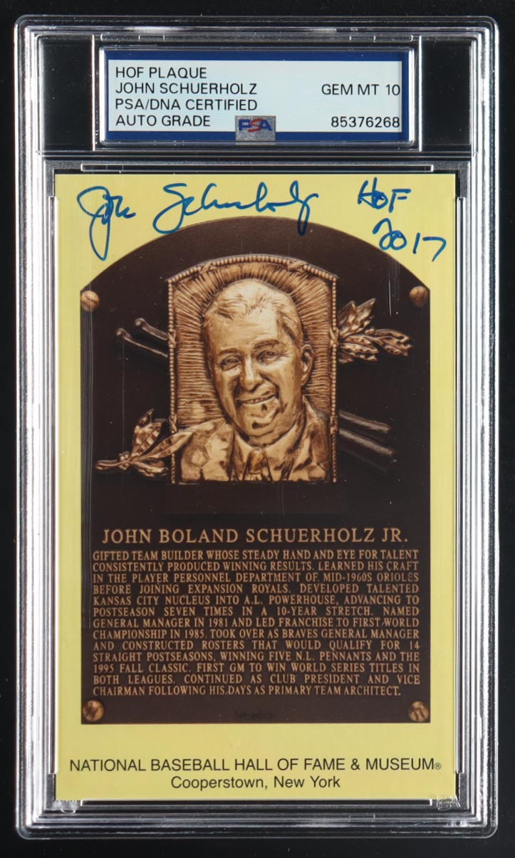 John Schuerholz Signed Hall of Fame Plaque Postcard Inscribed "HOF 2017" (PSA | Auto Grade PSA 10)