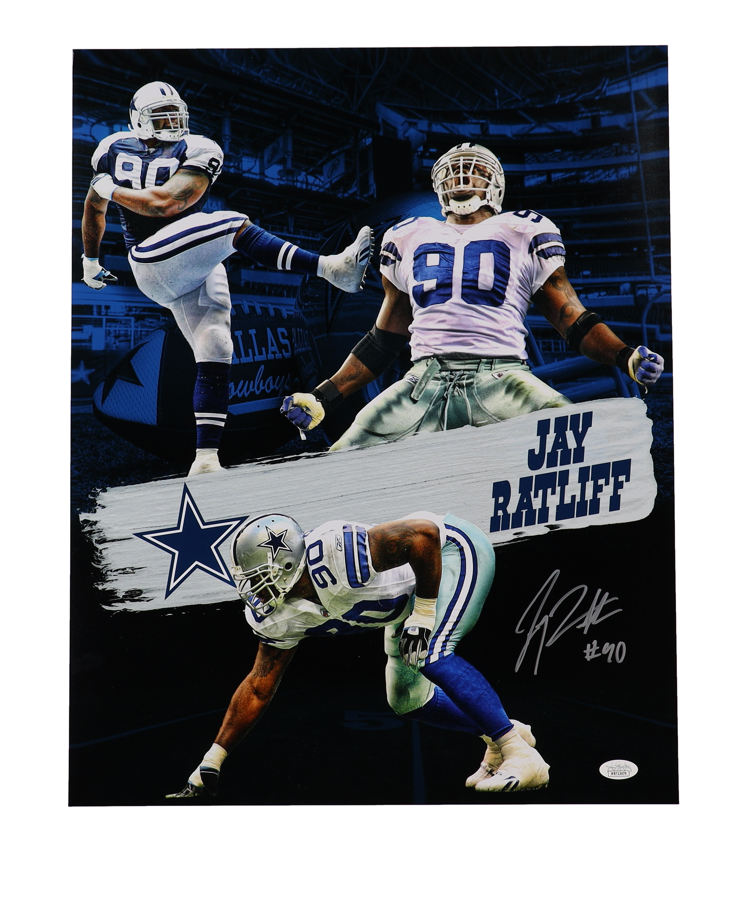 Photo measures 16" x 20" in size. Hand-signed by Jay Ratliff (Dallas Cowboys).