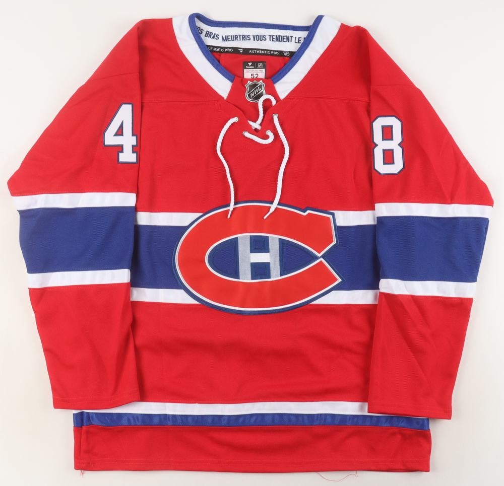 Fanatics jersey with everything sewn on, size 52. Has been hand-signed Lane Hutson (Montreal Canadiens).
