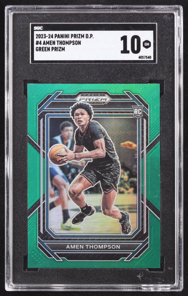 Amen Thompson 2023-24 Panini Prizm Draft Picks Green Prizm #4 RC (SGC 10)
