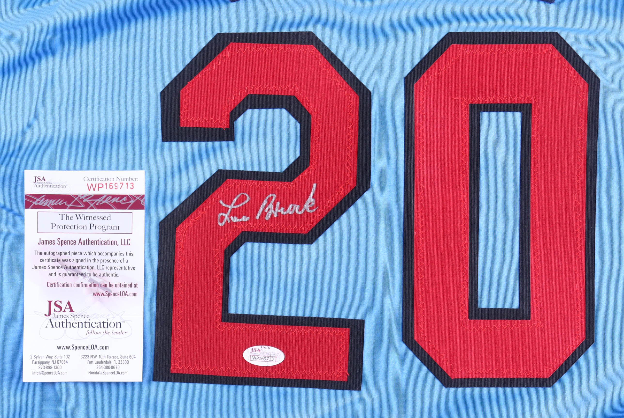 Custom jersey. Everything is sewn on, size XL. Hand-signed by Lou Brock (HOF).