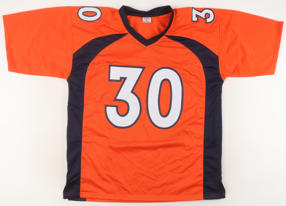 Custom jersey with everything sewn on, size XL. Hand-signed by Terrell Davis (HOF).