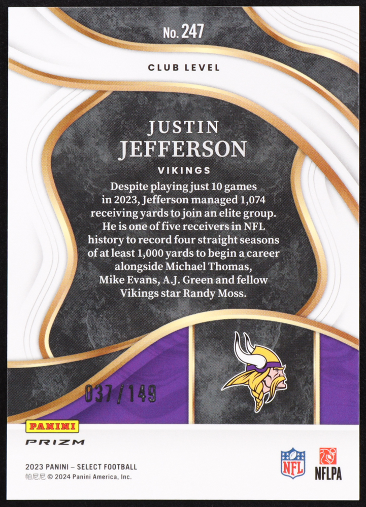 Justin Jefferson 2023 Panini Select Tri-Color Prizm #37/149 #247
