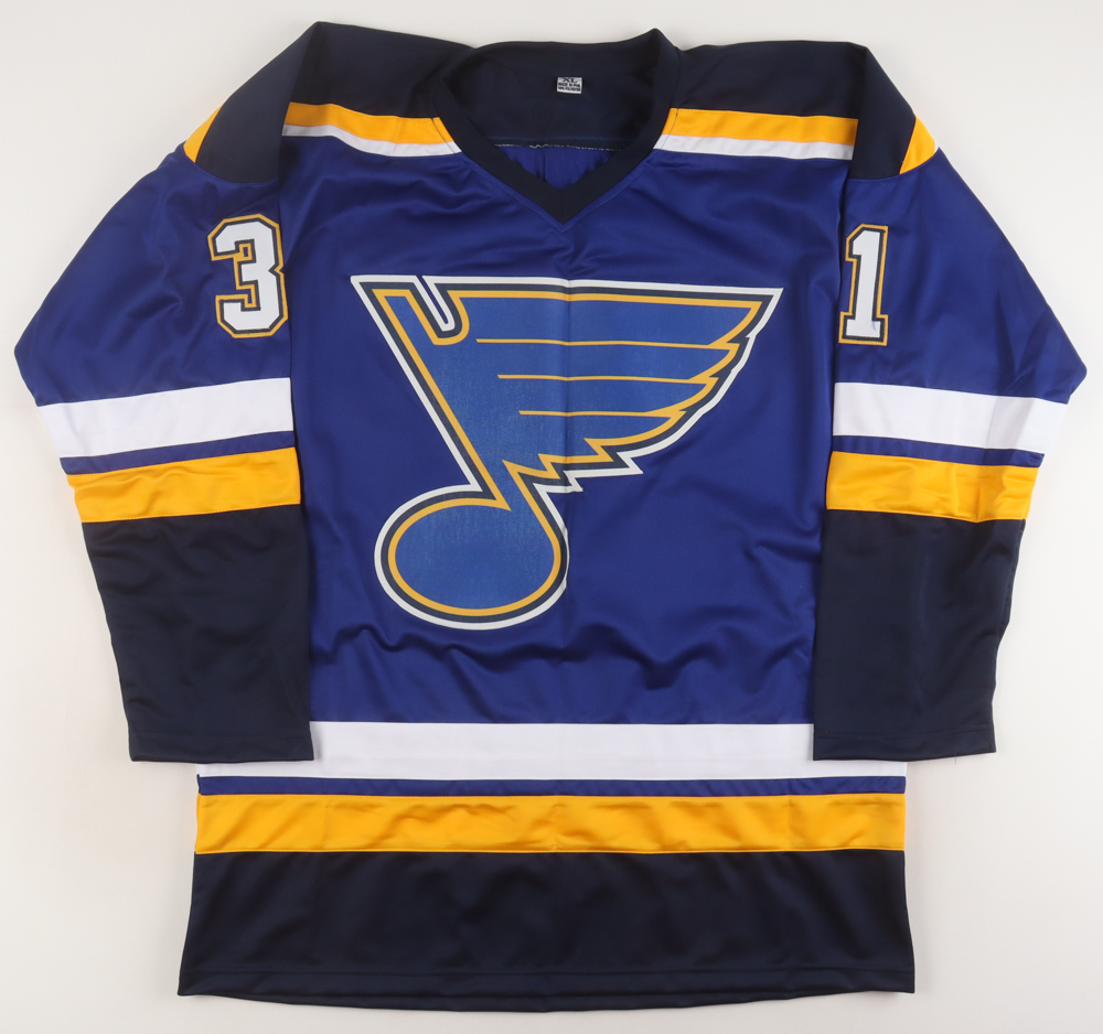 Custom jersey with everything sewn on, size XL. Has been hand-signed by Grant Fuhr (HOF).