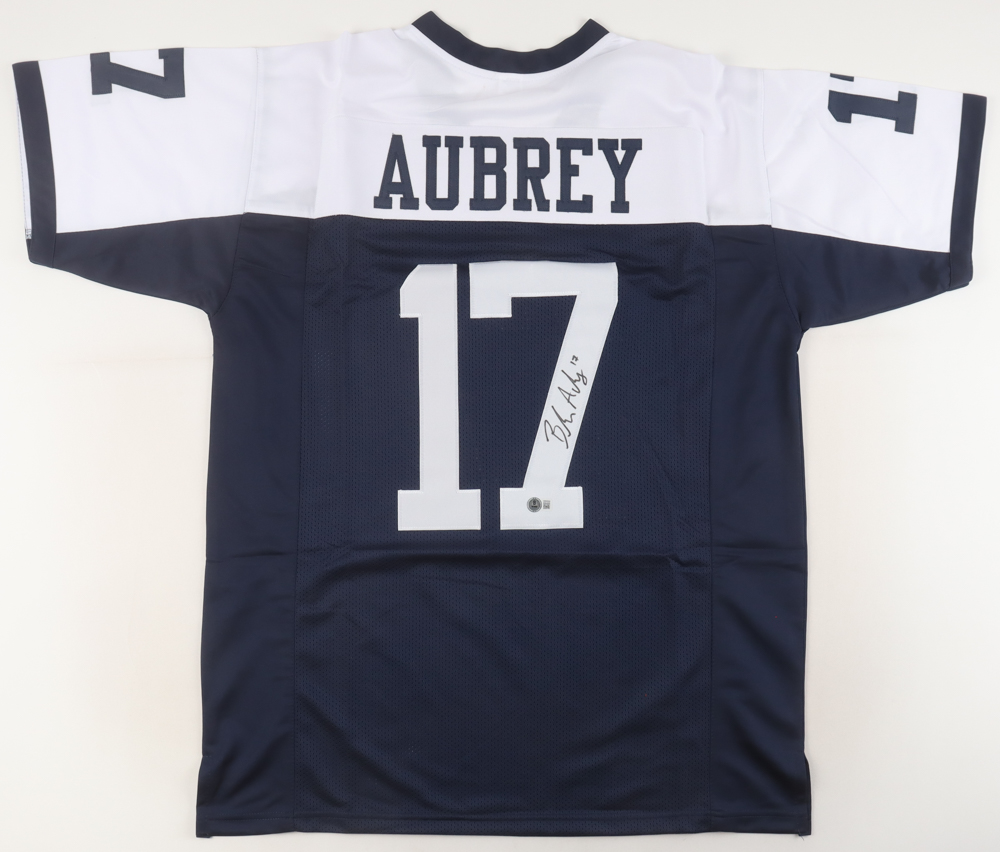 Custom jersey with everything sewn on, size XL. Hand-signed by Brandon Aubrey.