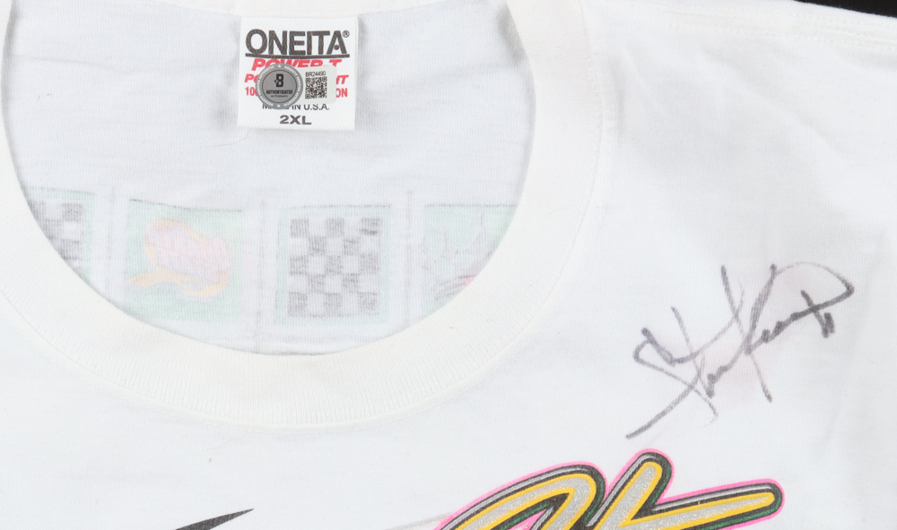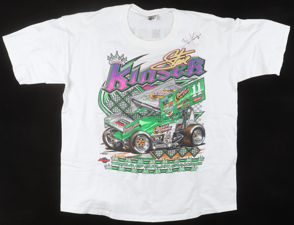 Custom t-shirt with everything printed on, size 2XL. Hand-signed by Steve Kinser.