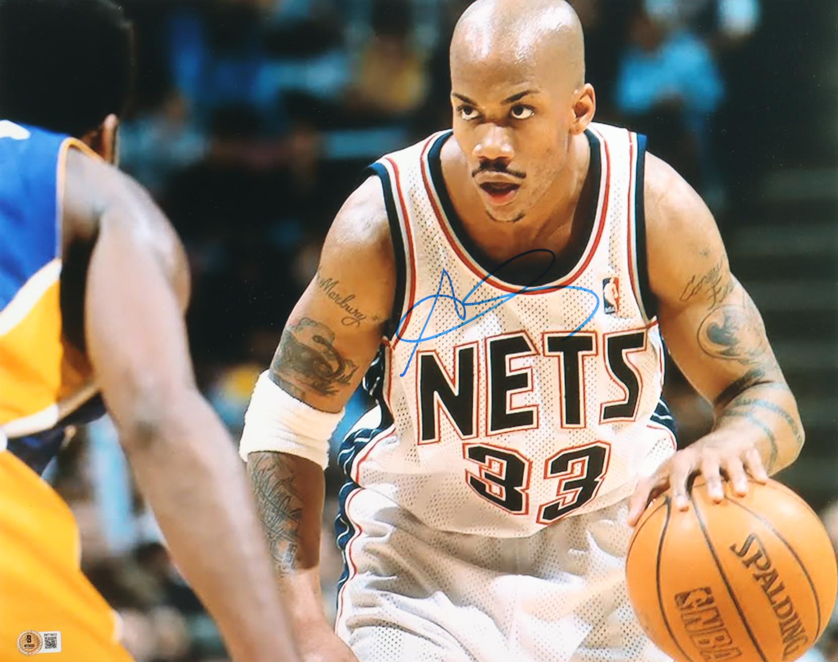 Photo measures 16" x 20" in size and has been hand-signed by Stephon Marbury (New Jersey Nets).