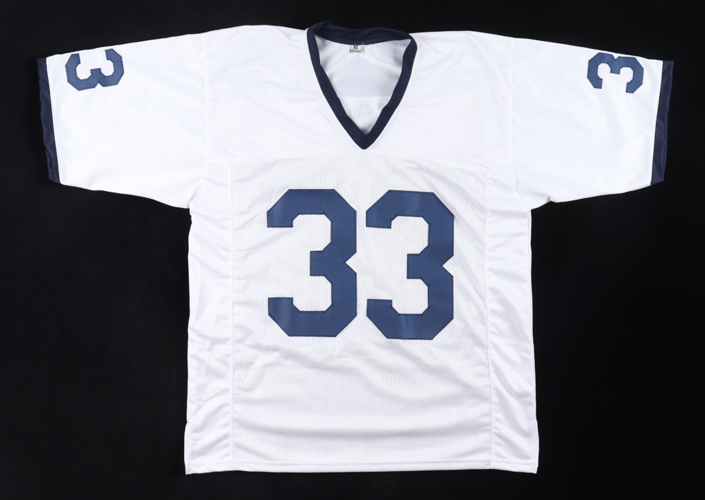 Custom jersey with everything sewn on, size XL. Hand-signed and inscribed by Jack Ham (HOF).