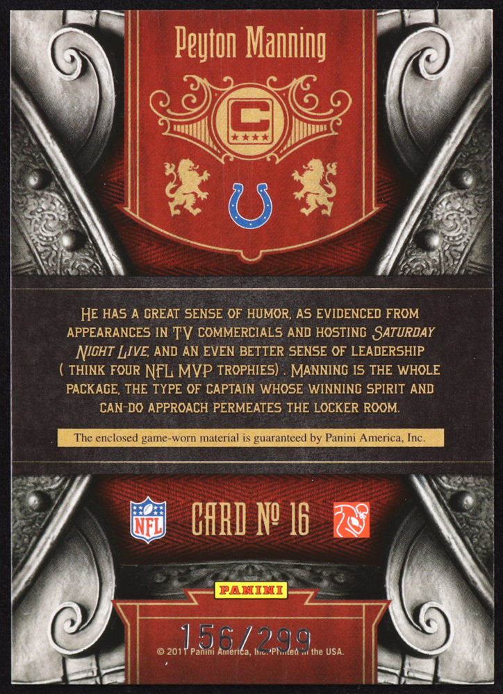 Peyton Manning 2011 Crown Royale Calling All Captains Materials #16 #156/299