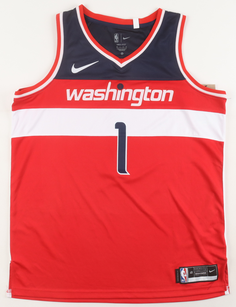 Nike jersey with everything sewn on, size 48. Has been hand-signed by Johnny Davis