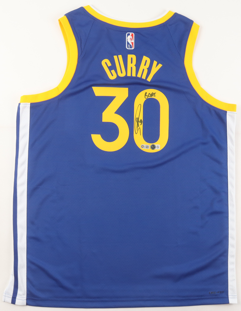 Stephen Curry Signed Warriors Jersey Inscribed "GOAT" (Beckett & Curry)