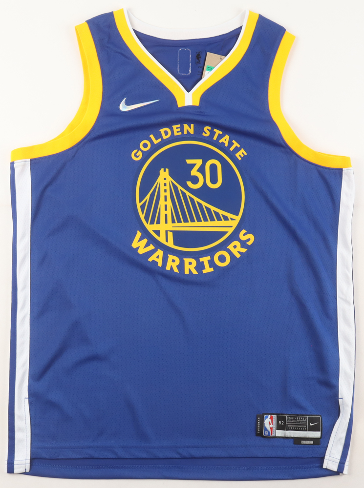 Nike jersey, everything is pressed on, size XL. Hand-signed and inscribed by Stephen Curry (Golden State Warriors).