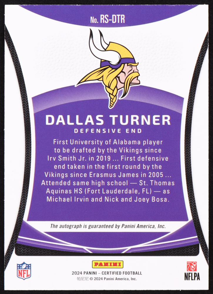 Dallas Turner 2024 Panini Certified Rookie Signature Mirror Blue #39 #27/75 RC
