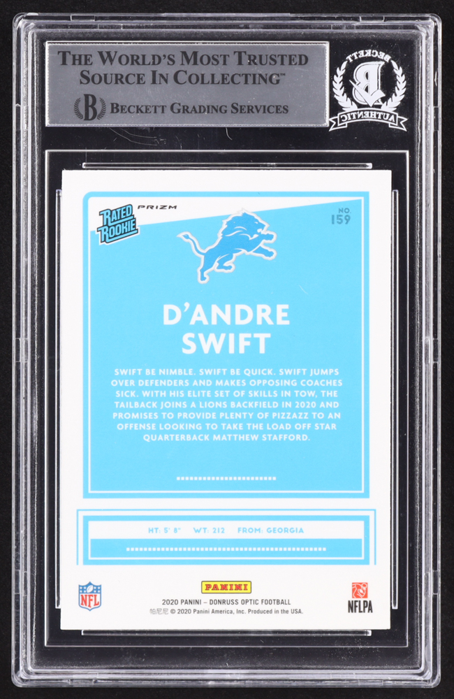 D'Andre Swift Signed 2020 Donruss Optic Holo #159 RC (Beckett & Fanatics)