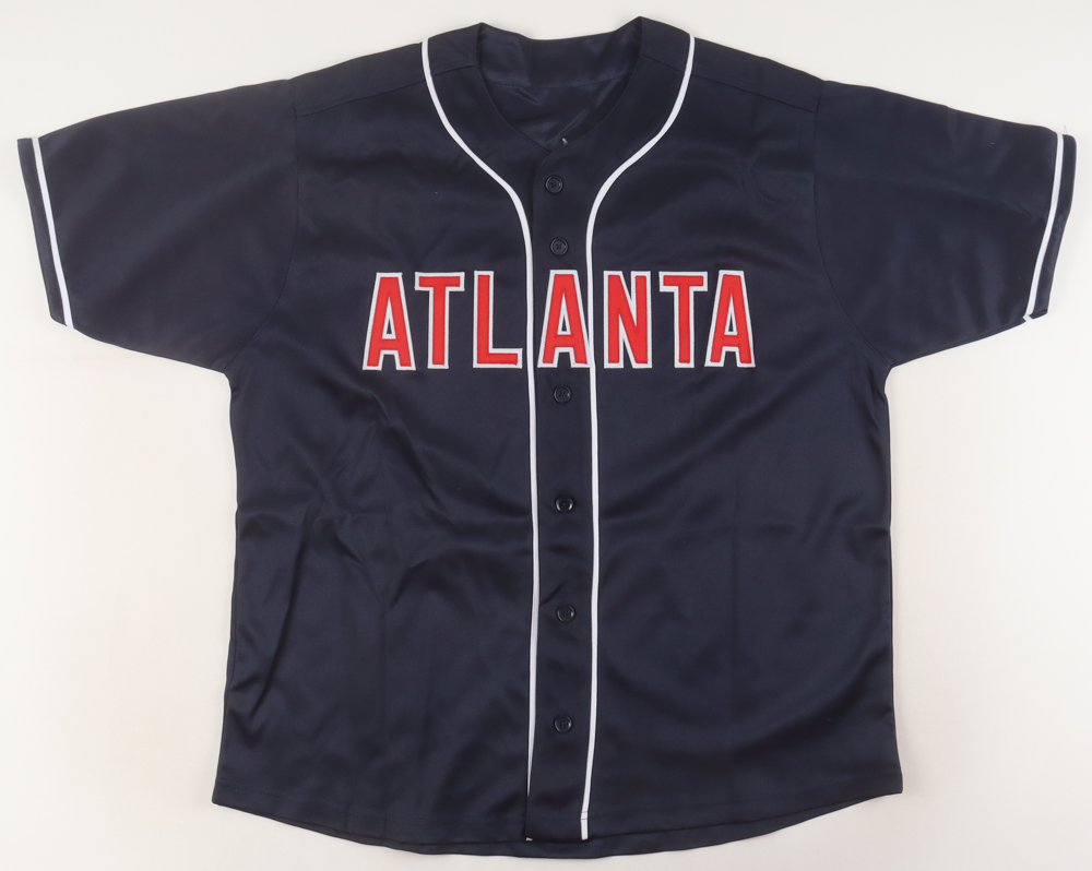 Custom jersey with everything sewn on, size XL. Hand-signed and inscribed by Ronald Acuna Jr..