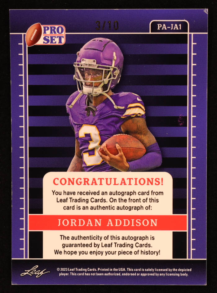 Jordan Addison 2023 Leaf Pro Set Metal Autographs Prismatic Pink #PA-JA1 RC #3/10