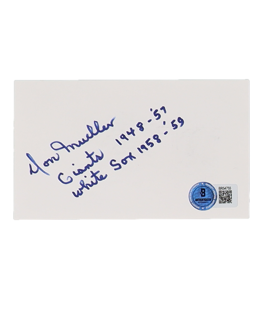 Don Mueller Signed 3x5 Index Card Inscribed "Giants 1948-'57" & "White Sox 1958-'59" (Beckett)