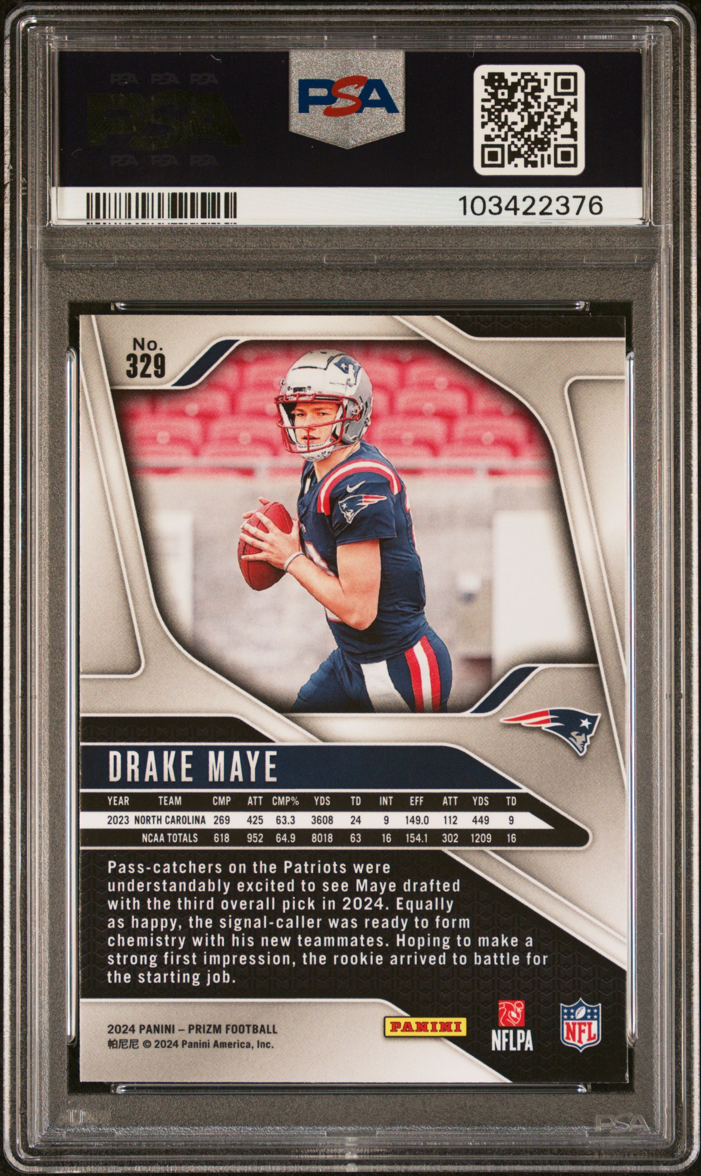 Drake Maye 2024 Panini Prizm #329 RC (PSA 9)