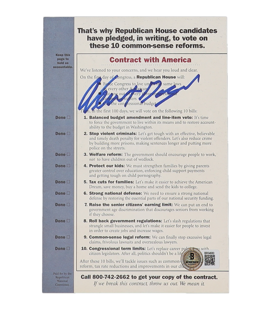 Newt Gingrich Signed 5x7.5 Political Advertisement (Beckett)