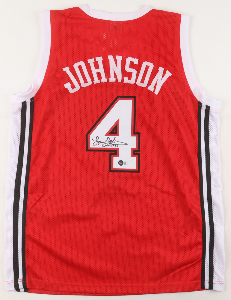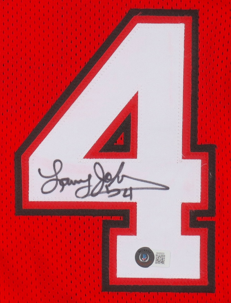 Custom jersey. Everything is sewn on, size XL. Has been hand-signed by Larry Johnson. Please note, glue is visible through the reverse number and the signature has bled. See photos regarding the condition of the item.