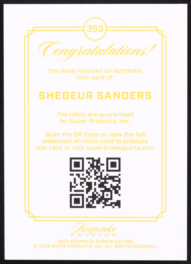 Shedeur Sanders 2024 Keepsake Sports Edition #353 RC #66/99