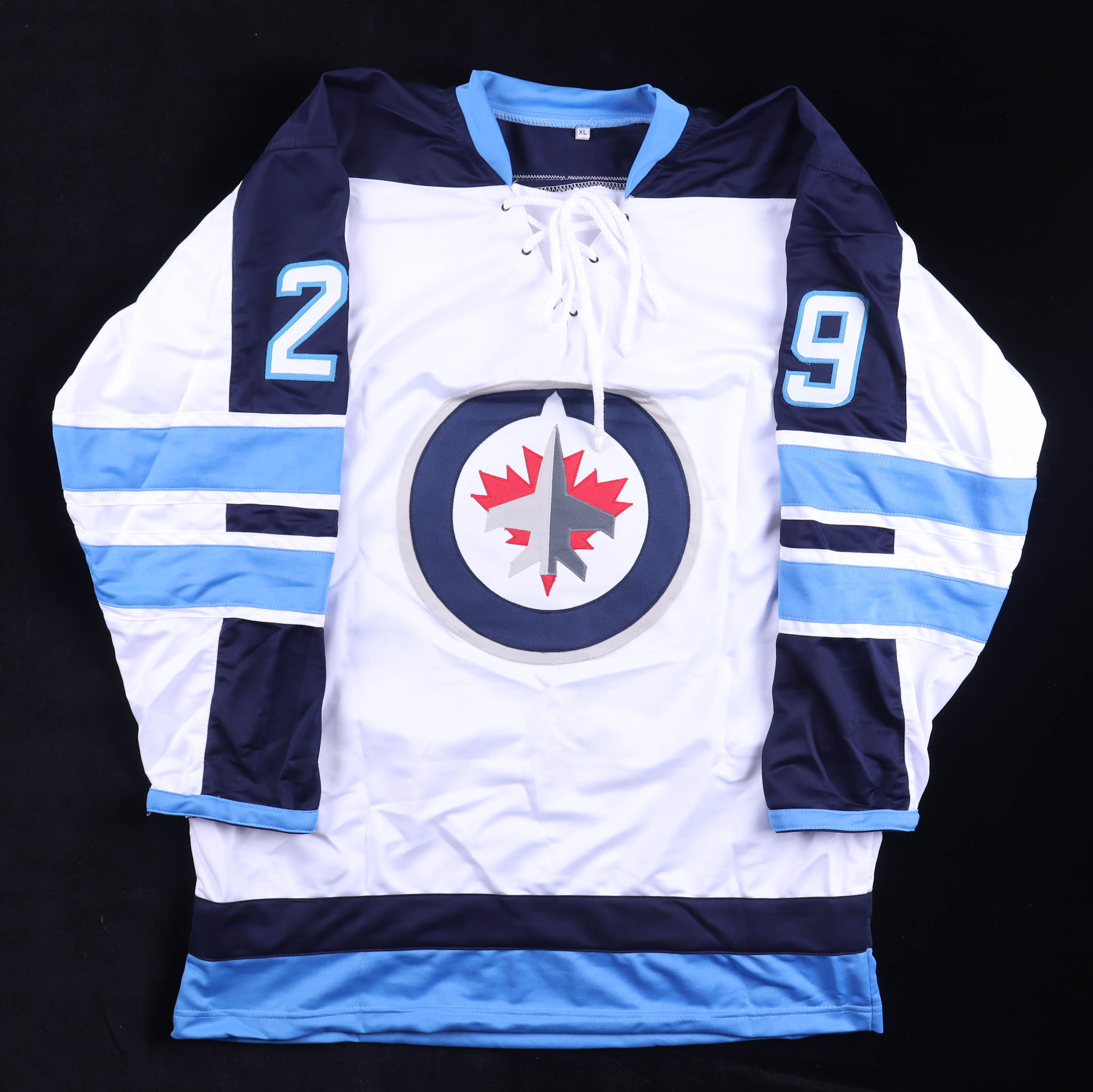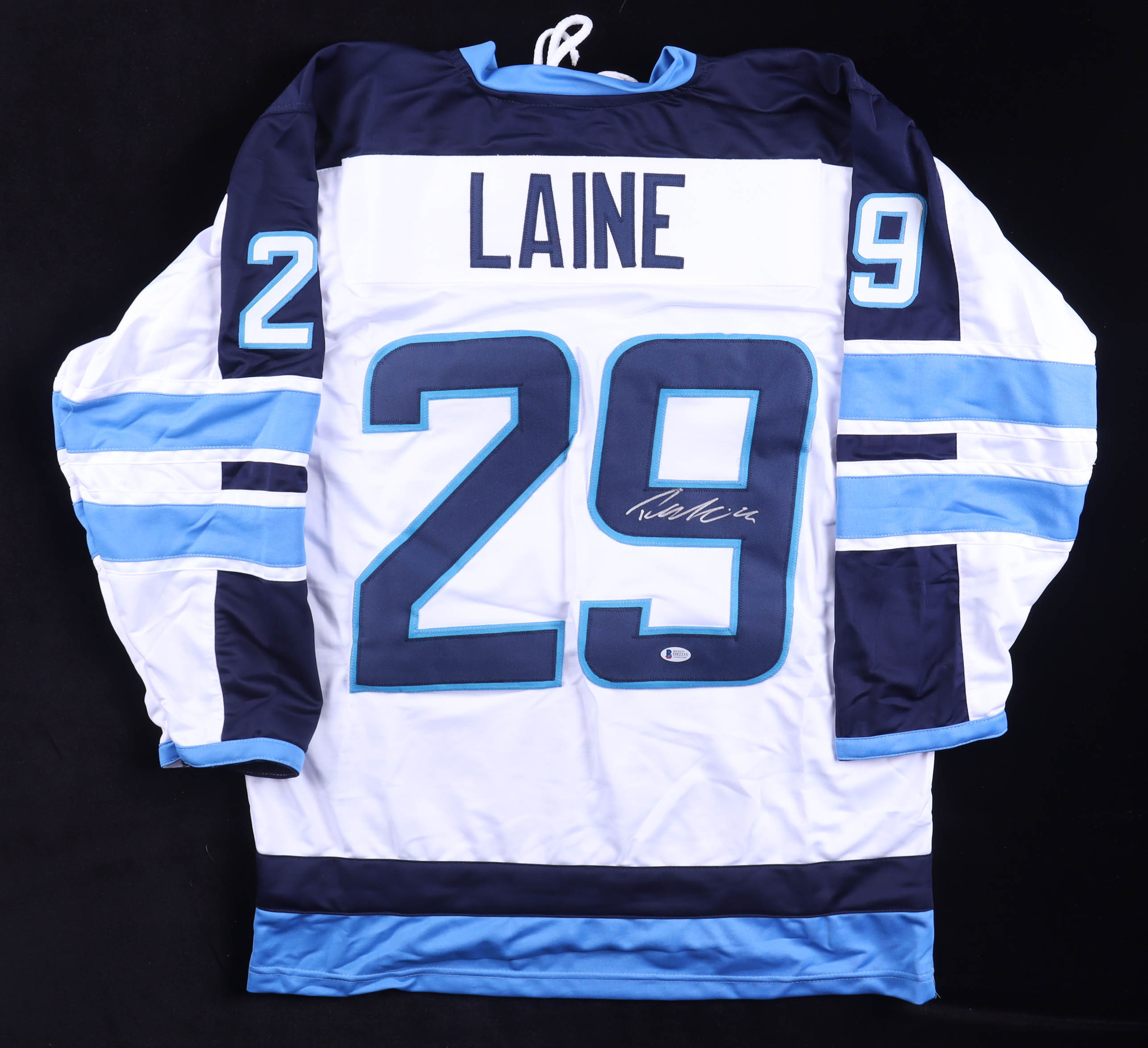 Custom jersey. Everything is sewn on, size XL. Hand-signed by Partrik Laine.