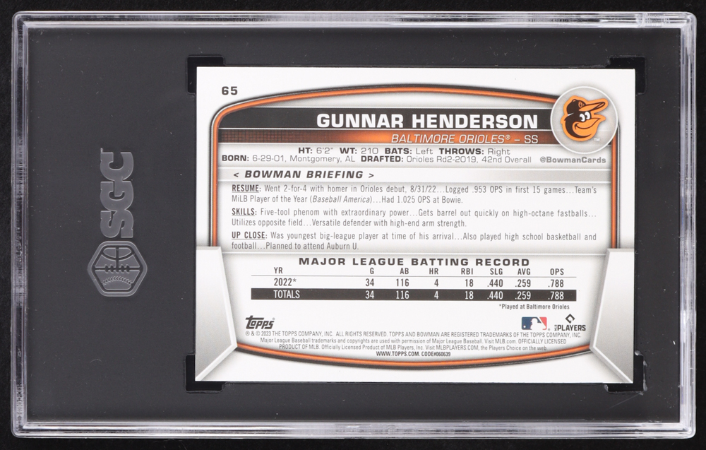 Gunnar Henderson 2023 Bowman #65 RC (SGC 9.5)