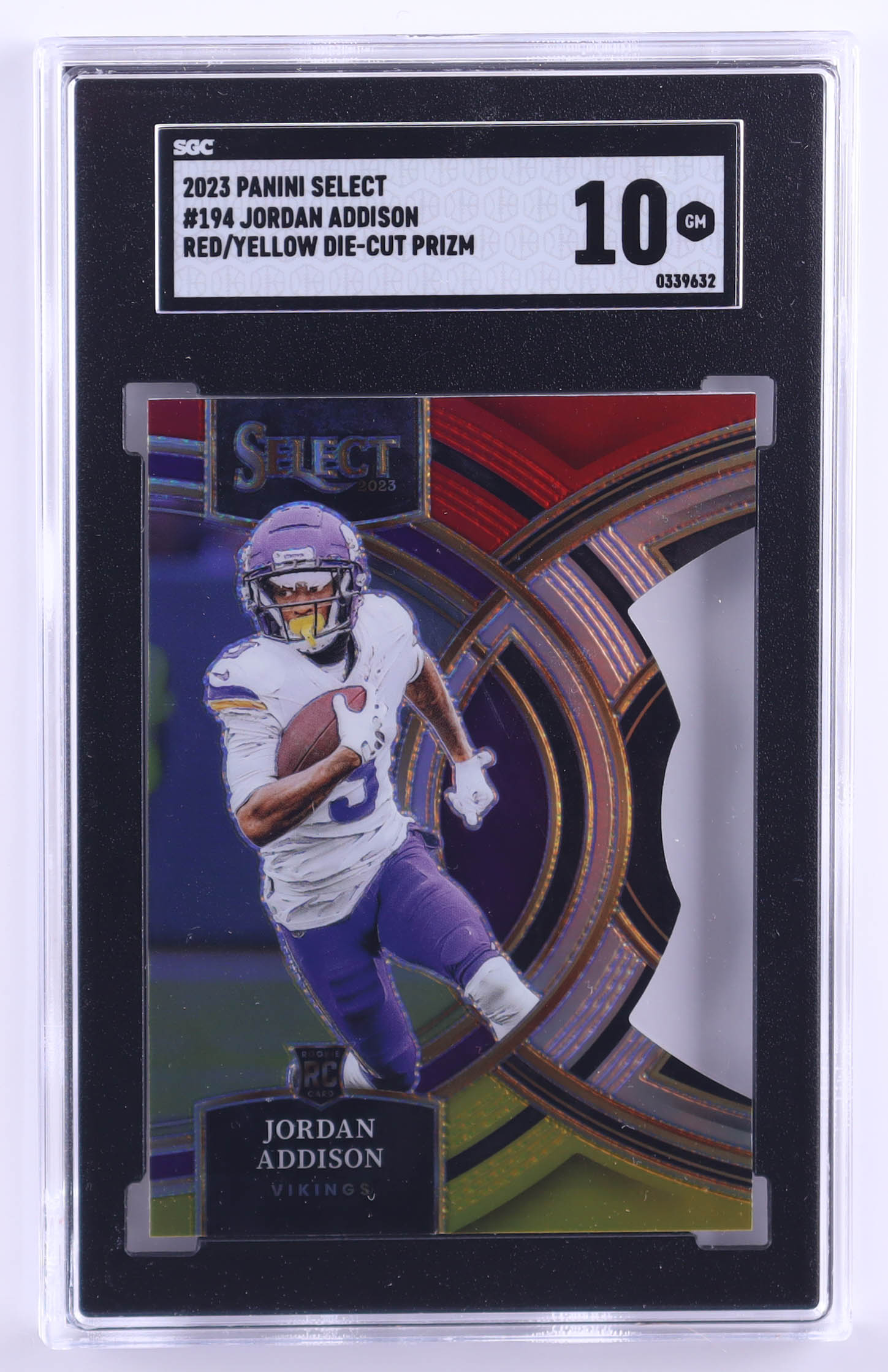 Jordan Addison 2023 Panini Select Prizm Red/Yellow Die-Cut Prizm #194 RC (SGC 10)