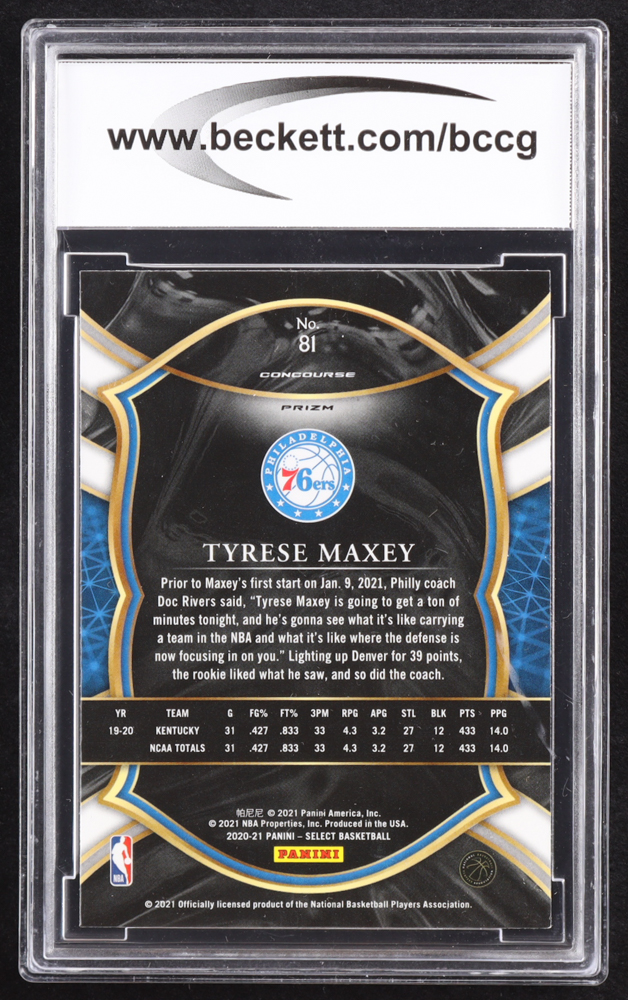 Tyrese Maxey 2020-21 Select Prizms Blue White Purple Ice #81 RC (BCCG 10)