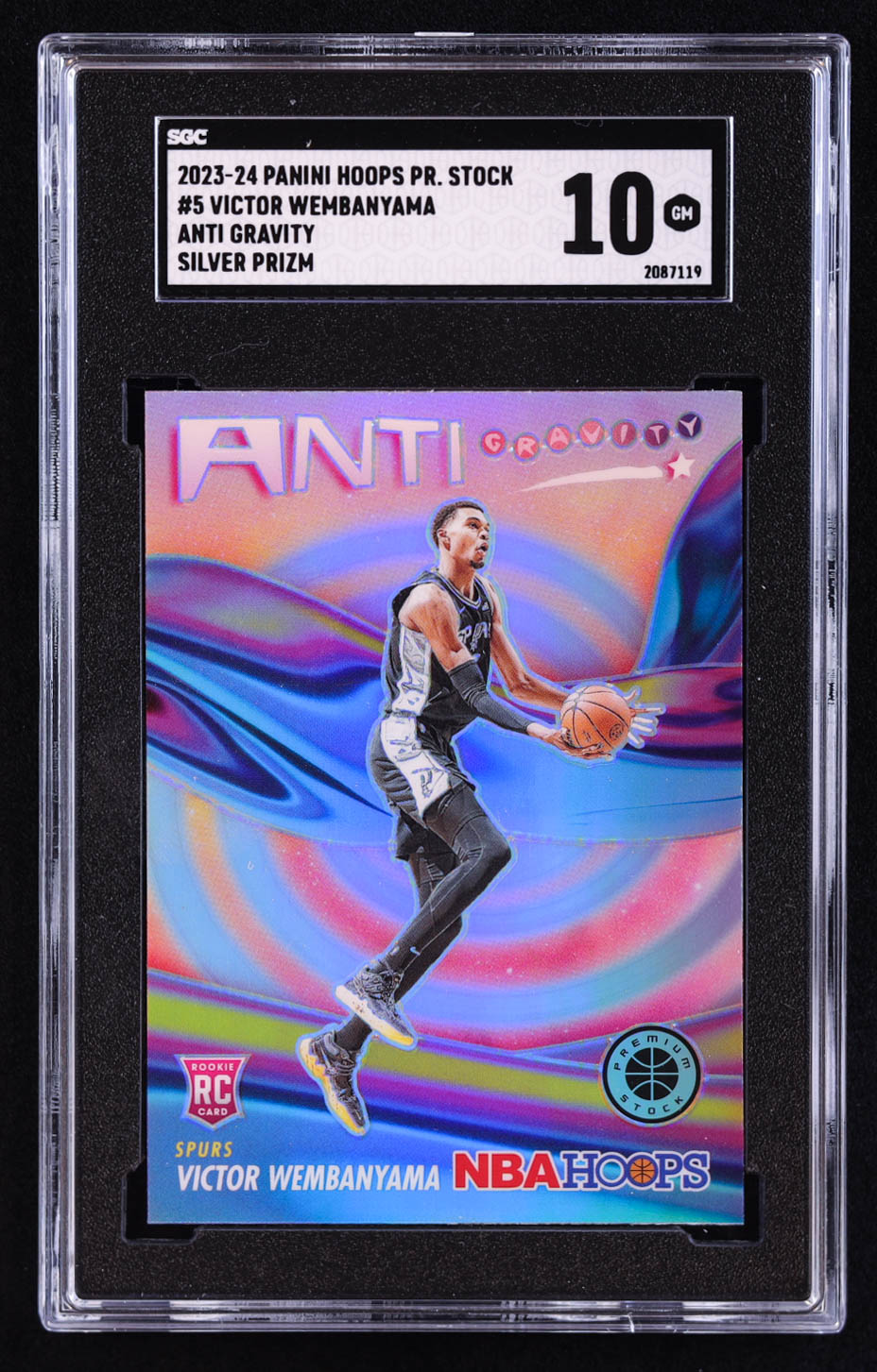 Victor Wembanyama 2023-24 Hoops Premium Stock Anti Gravity Silver Prizm #5 RC (SGC 10)