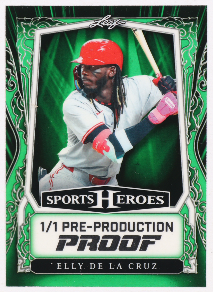 Elly De La Cruz Leaf Sports Heroes Clear Green Pre-Production Proof #NNO RC #1/1