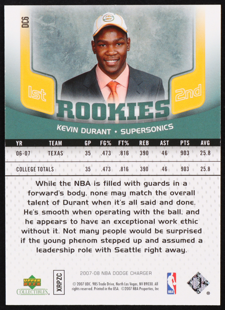 Kevin Durant 2007-08 Upper Deck Dodge Charger #DC6 RC
