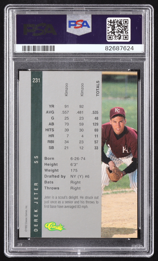 Derek Jeter 1992 Classic Four Sport #231 RC (PSA 9)