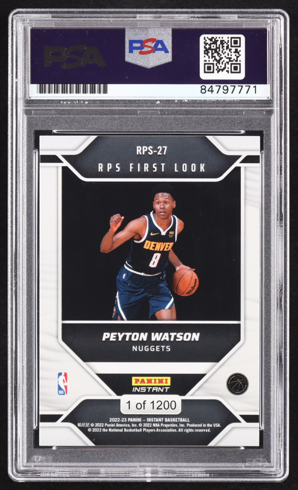 Peyton Watson Signed 2022-23 Panini Instant RPS First Look #RPS27 RC (PSA | Auto 9)