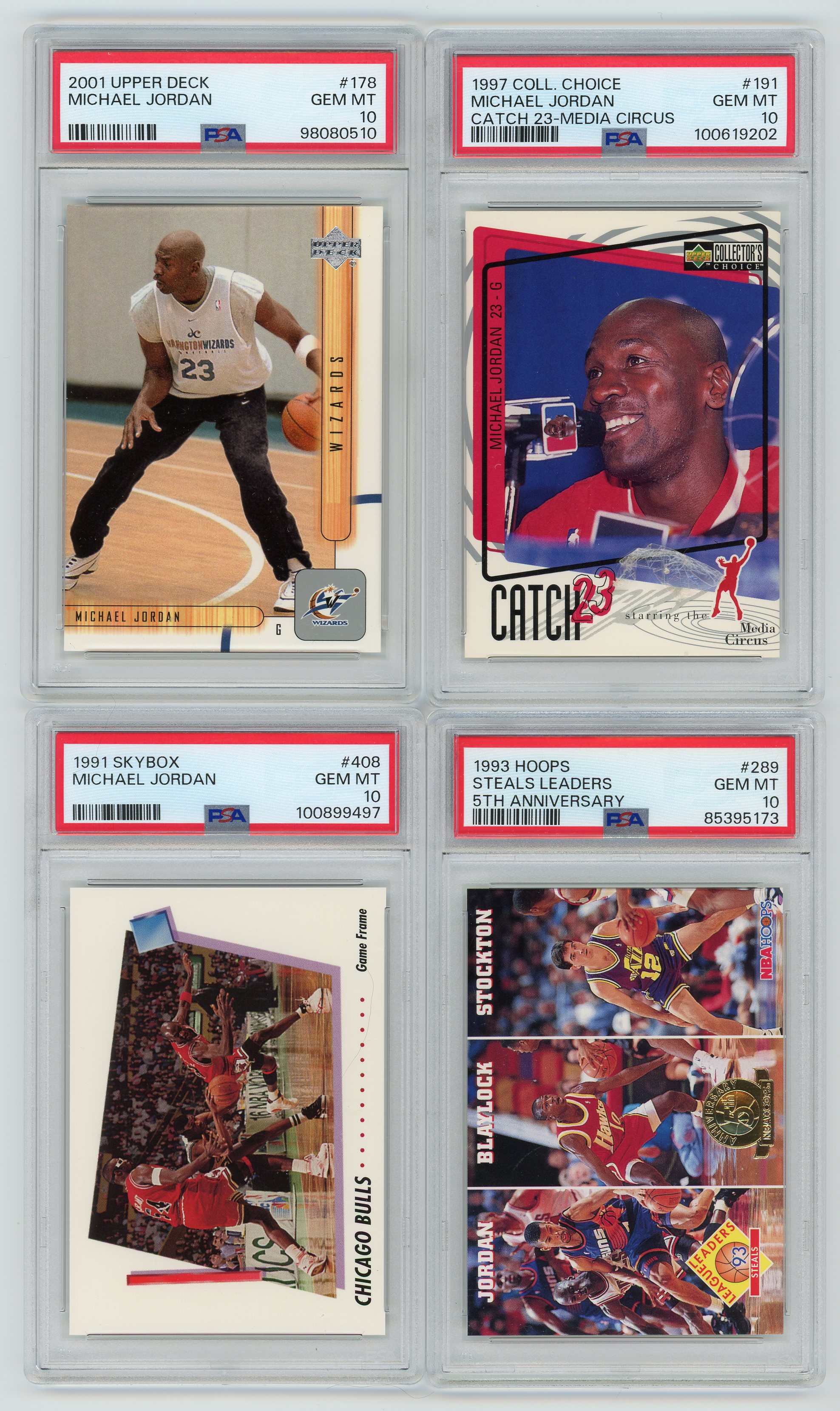 -1993 Hoops Michael Jordan, Baylock & John Stockton Steals Leaders #289 PSA 10
