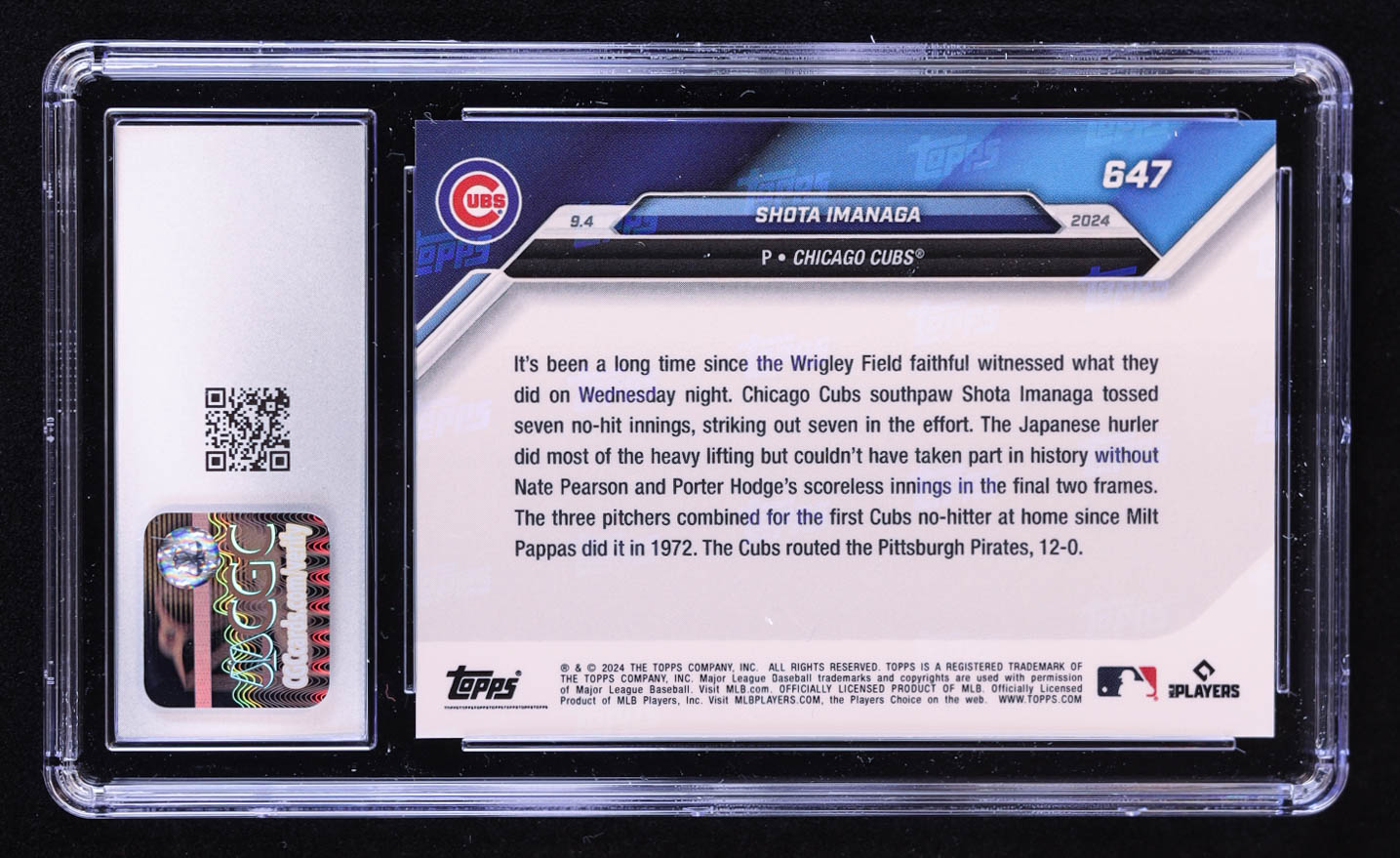 Shota Imanago 2024 Topps Now #647 RC (CGC 10)
