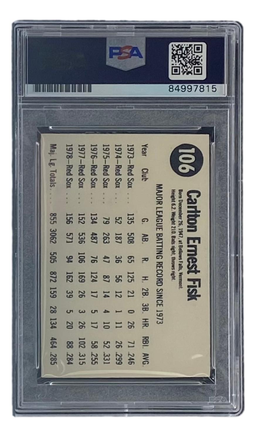 Carlton Fisk Signed 1979 Hostess #106 (PSA)
