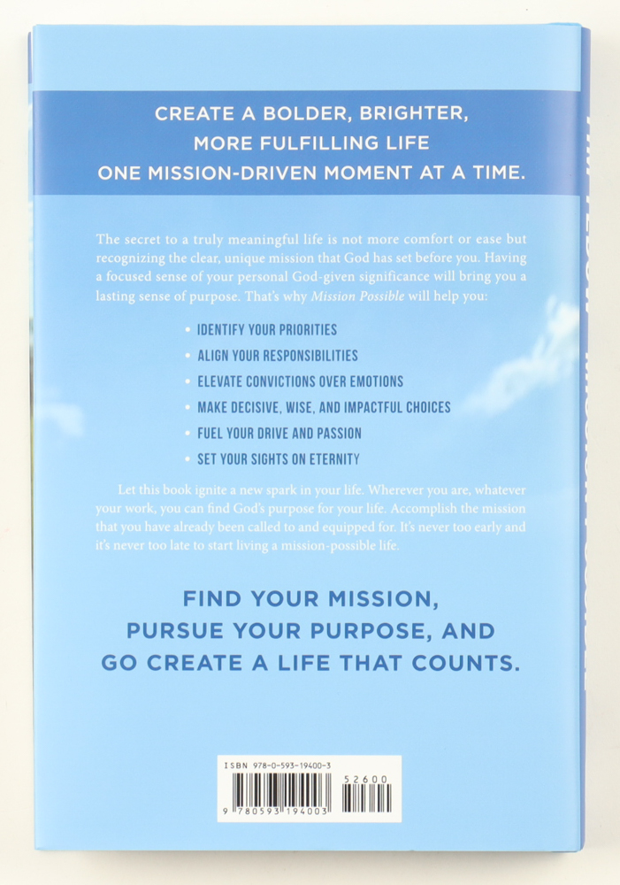 "Mission Possible" hard cover book has been hand-signed on an inside page by Tim Tebow (Denver Broncos).