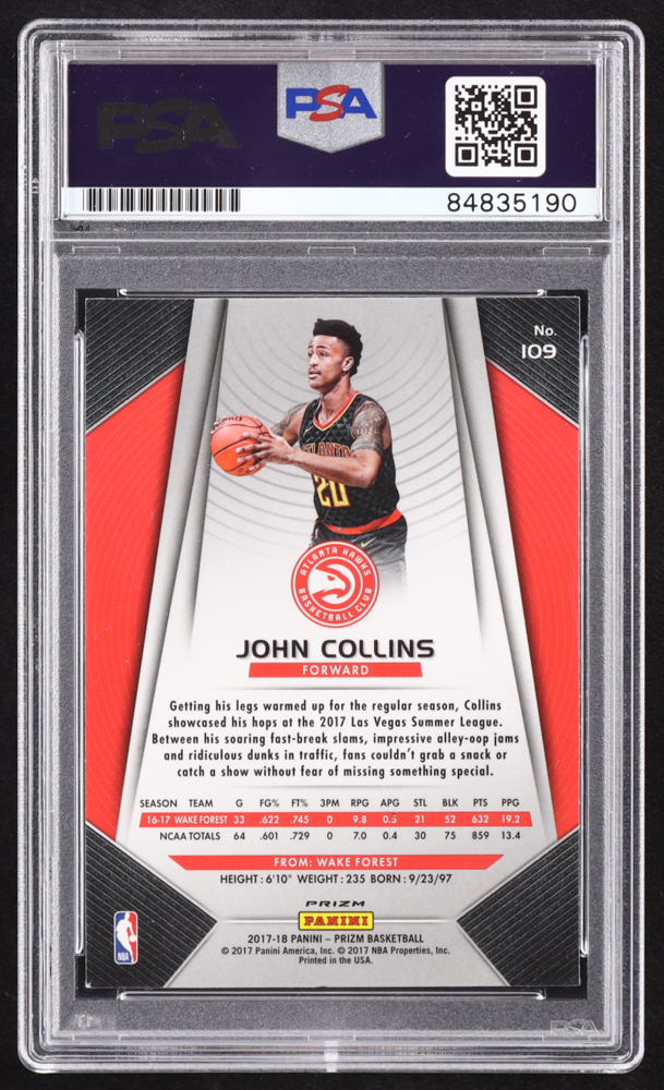 John Collins Signed 2017-18 Panini Prizm Prizms Silver #109 RC (PSA)