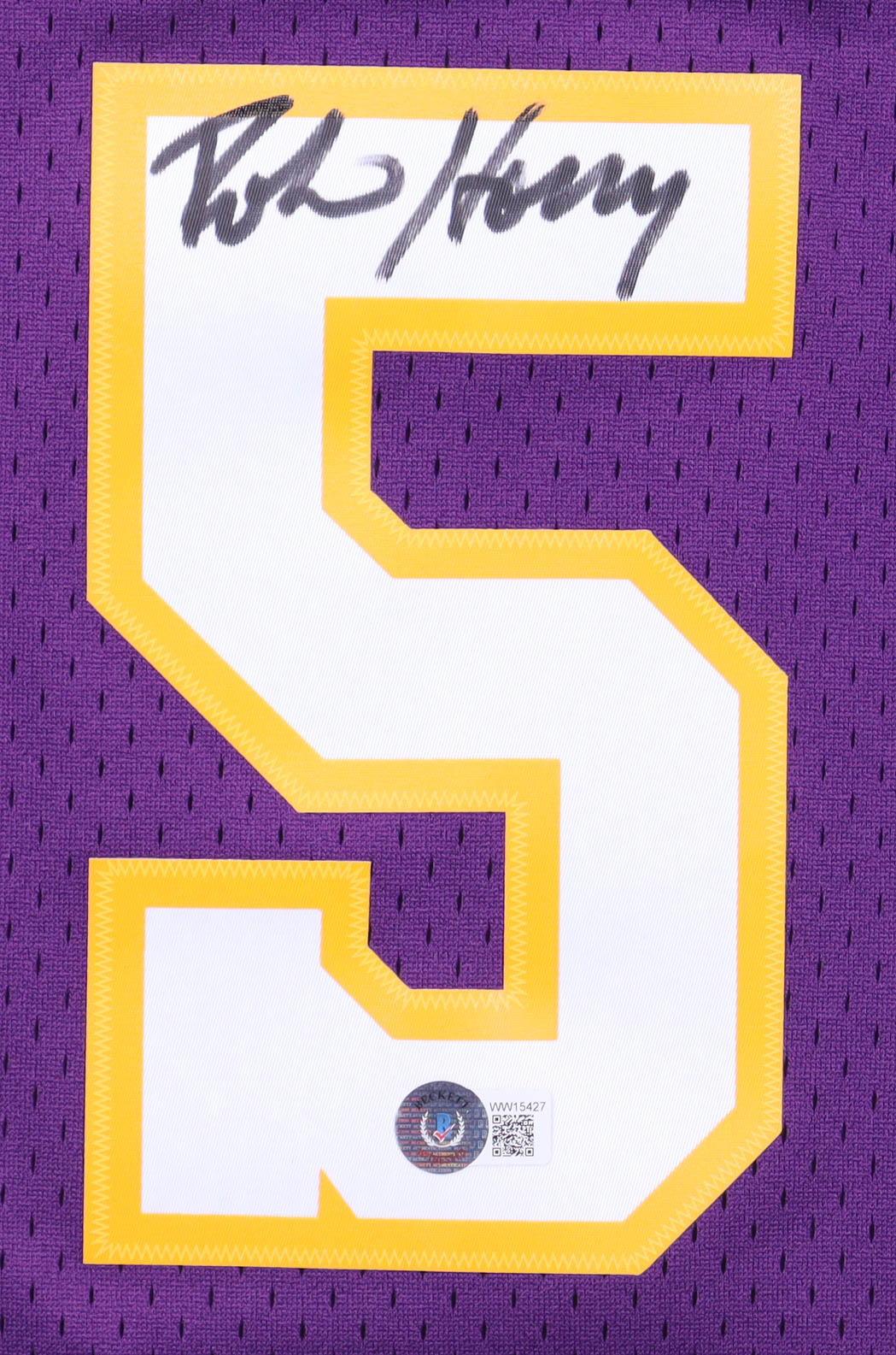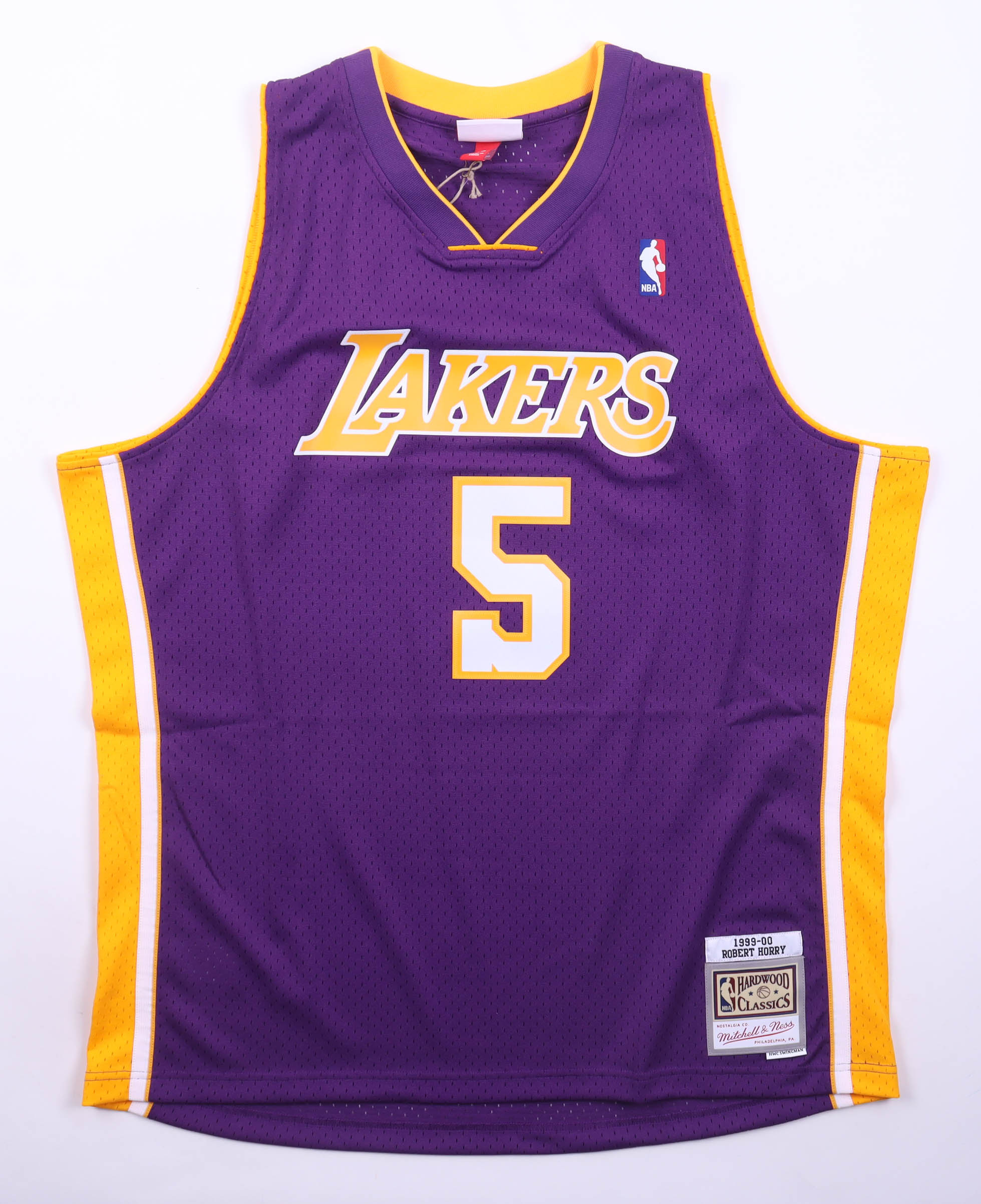 Mitchell & Ness jersey with everything pressed on, size XL. Hand-signed by Robert Horry.